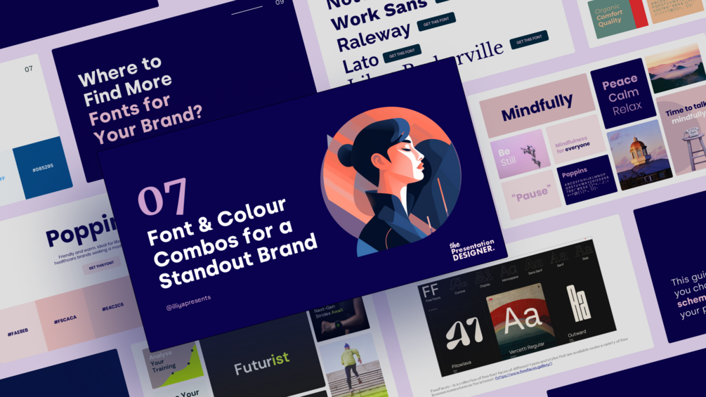 Upgrade your brand instantly with 7 expertly designed font & colour combos in this 29-page PDF!